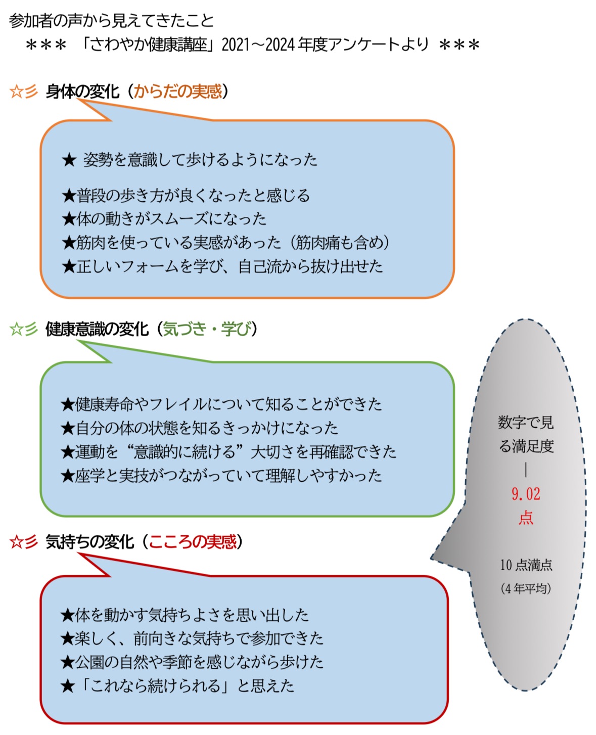 アンケート結果から、身体の変化だけでなく健康意識も変化し、それによって気持ちの変化も感じた方が多かったことが分かりました。